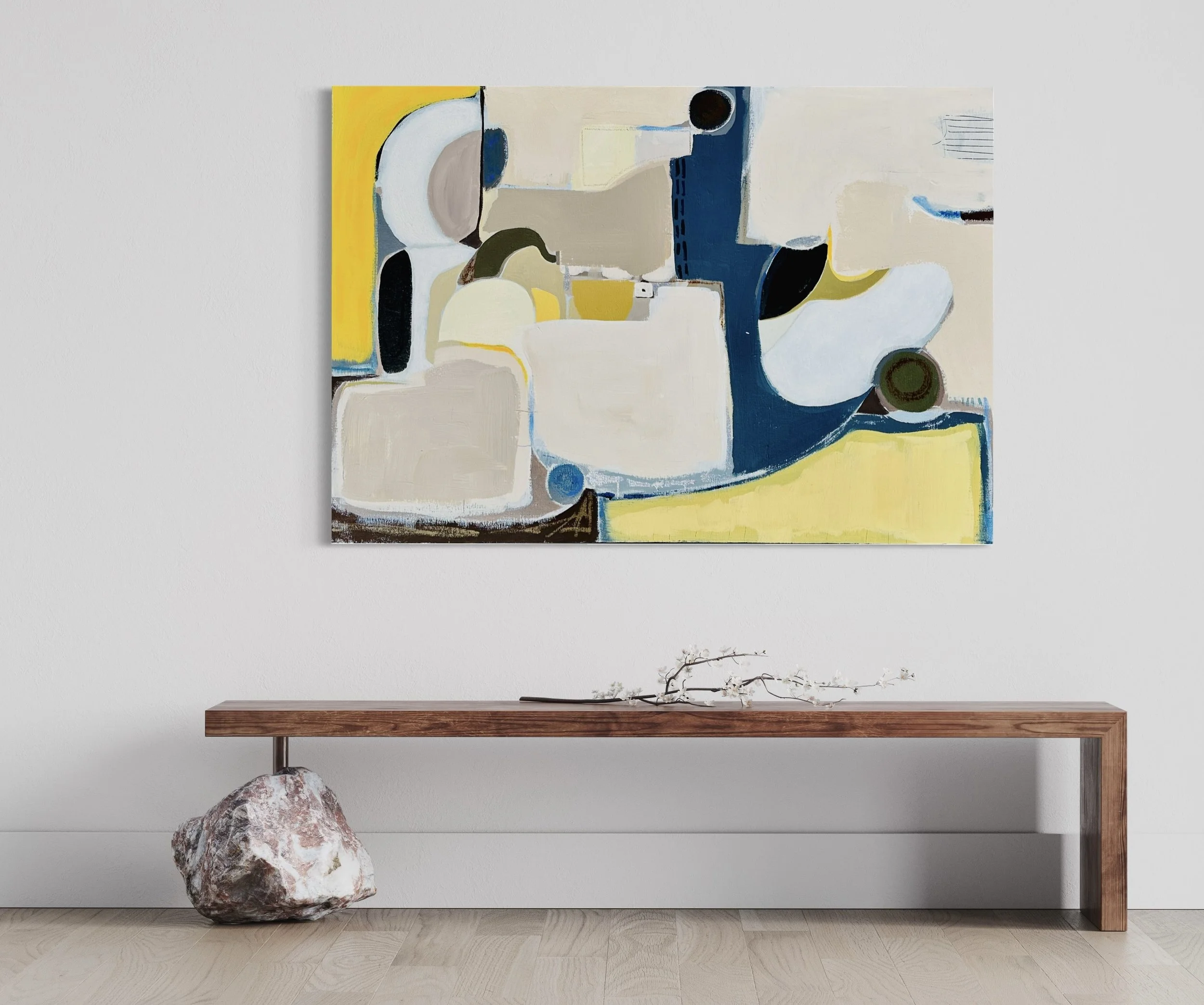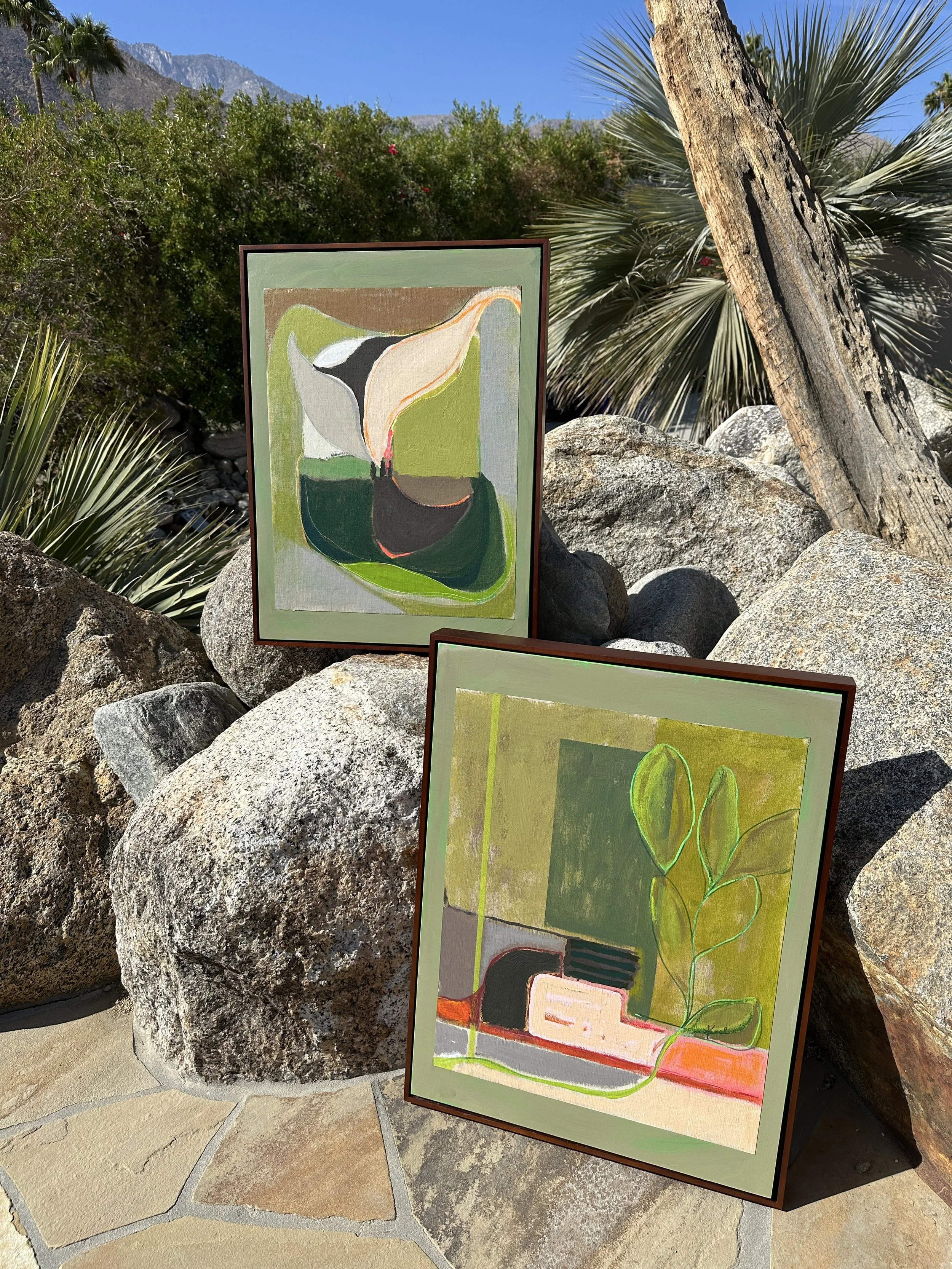 View the new artwork inspired by Palm Springs desert landscapes and vivid skies along with nods to California modernist painters such as Agnes Pelton, Helen Lundenberg and others.
